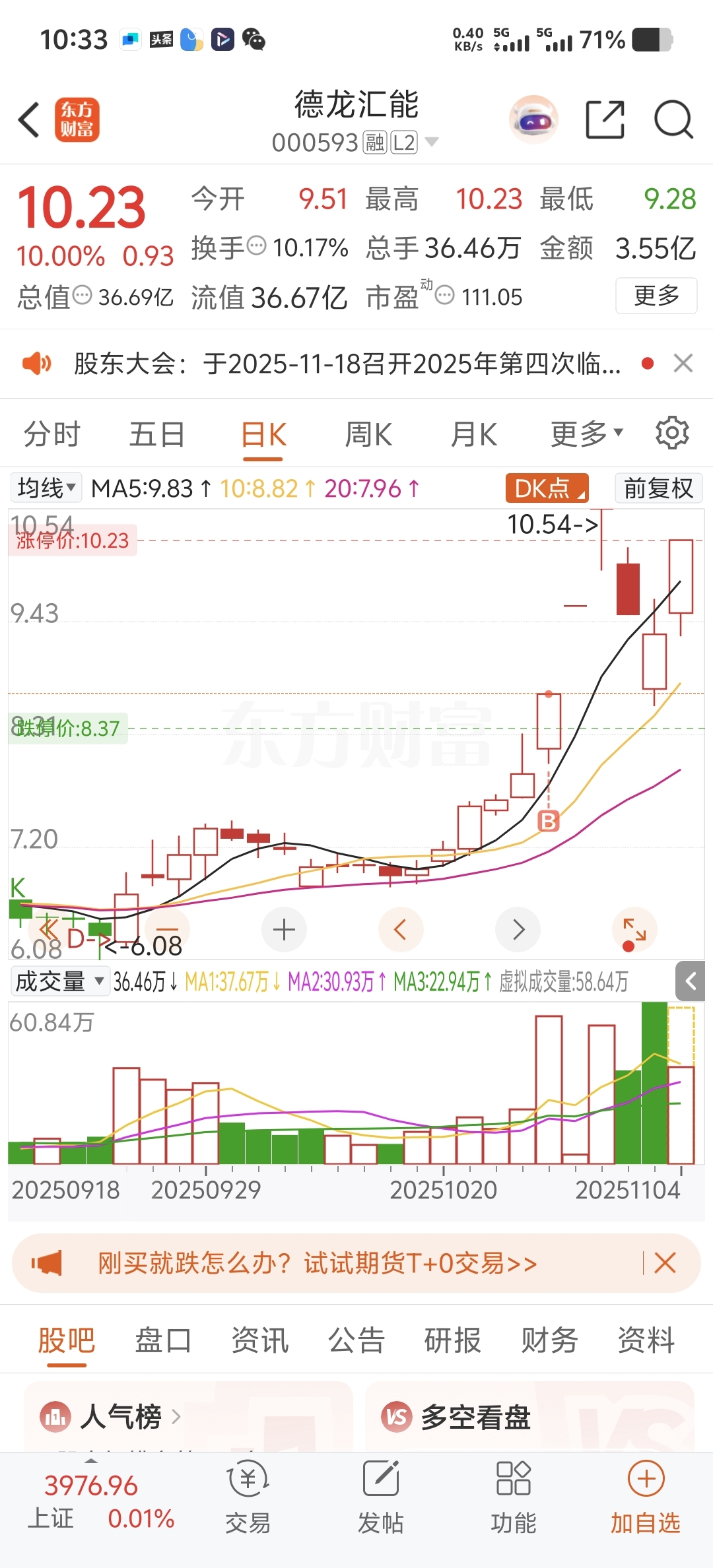 $德龙汇能(SZ000593)$ 就是甩不掉