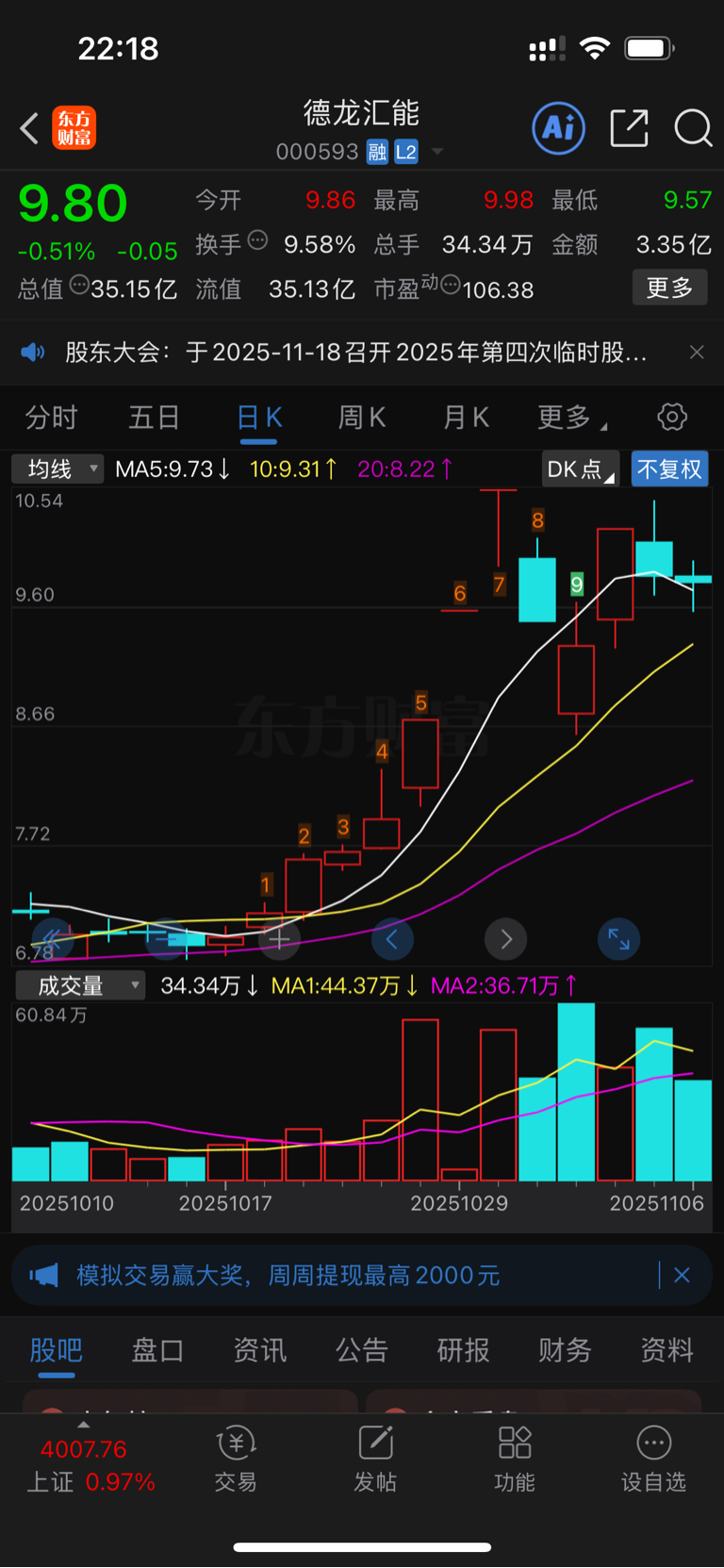 $德龙汇能(SZ000593)$ 兄弟们,明天开盘我可是要直接冲了,三阴不破一阳,下周一必涨,都别拦我,如果高开就算了