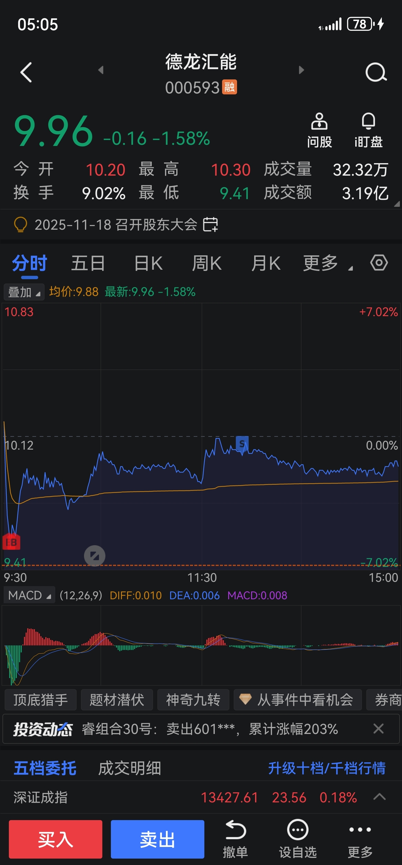 $德龙汇能(SZ000593)$ 我承认我有赌的成份。感谢主力给机会。