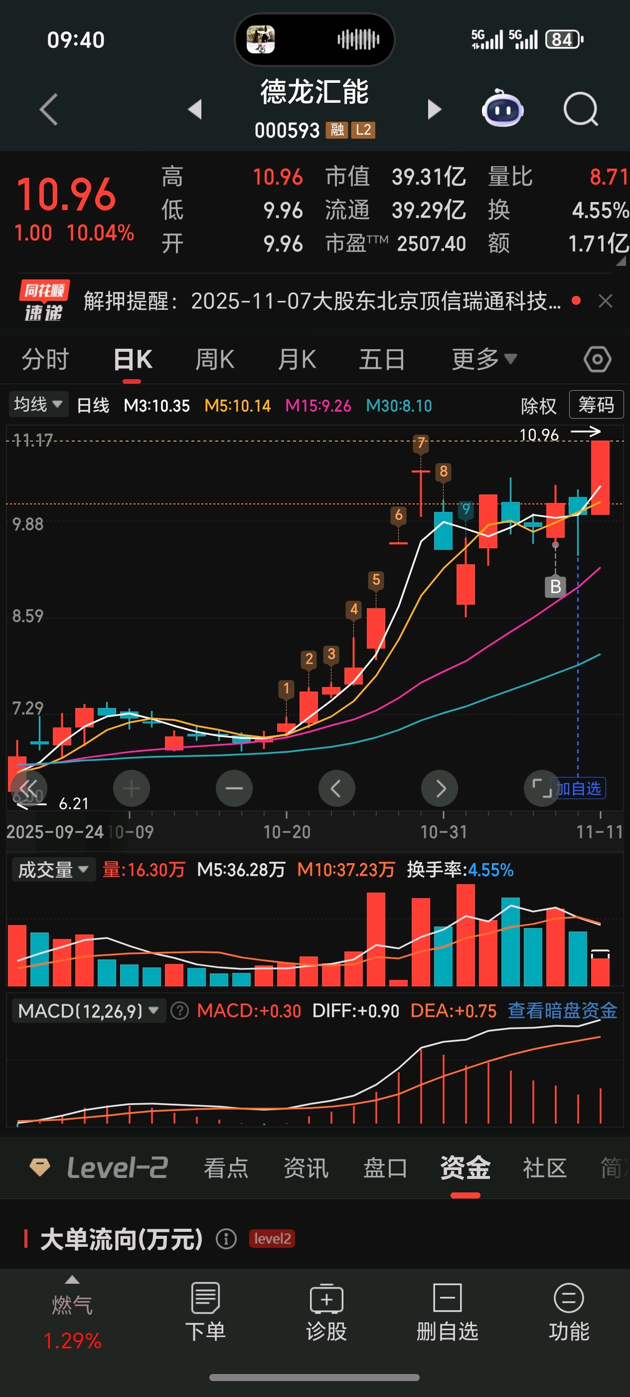 $德龙汇能(SZ000593)$ 等着一天很久了,昨天收的下引线也没什么量明显是洗盘。二波将以缩量的形式完成,先手砸后手了。收购还在进行就会不断有公告来造势,这就是预期,叠加储能,至少40涨幅