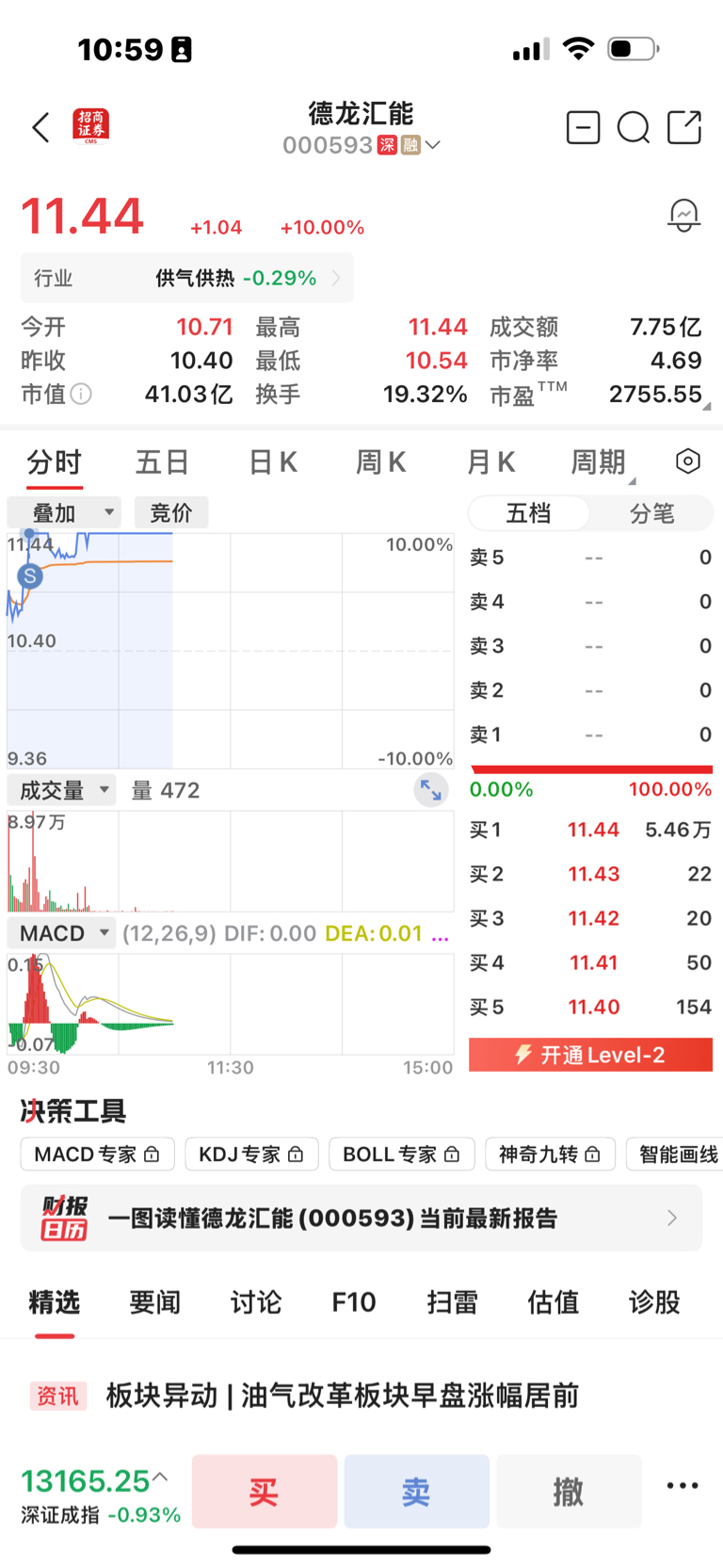 $德龙汇能(SZ000593)$ 昨天涨停没走,今天涨停走了,回封那么快