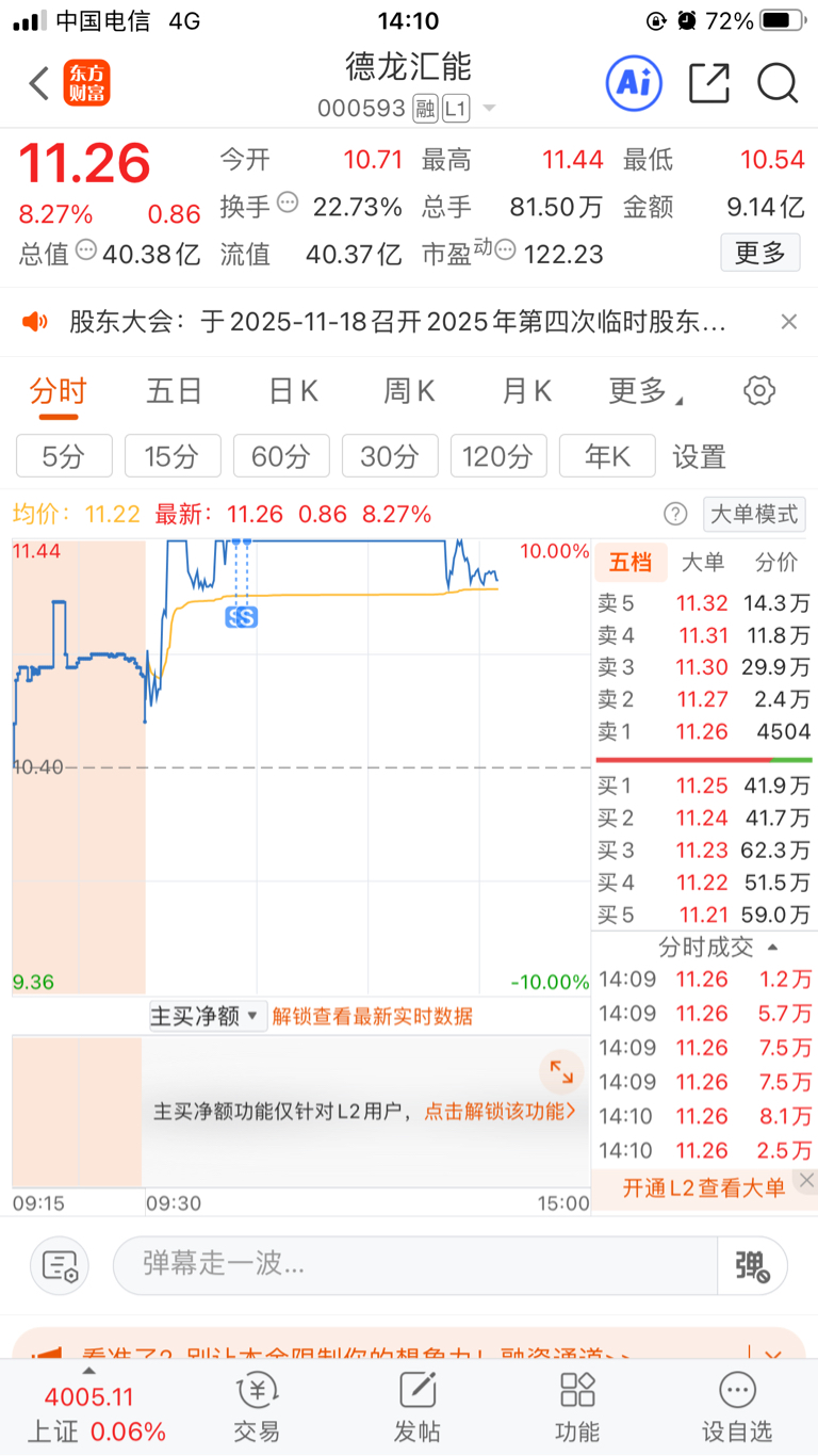 $德龙汇能(SZ000593)$ 溜了溜了溜了溜了