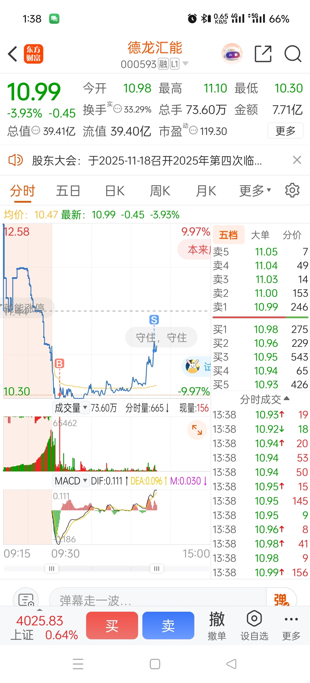 $德龙汇能(SZ000593)$ 就知道今天会有下影线,感觉出早了