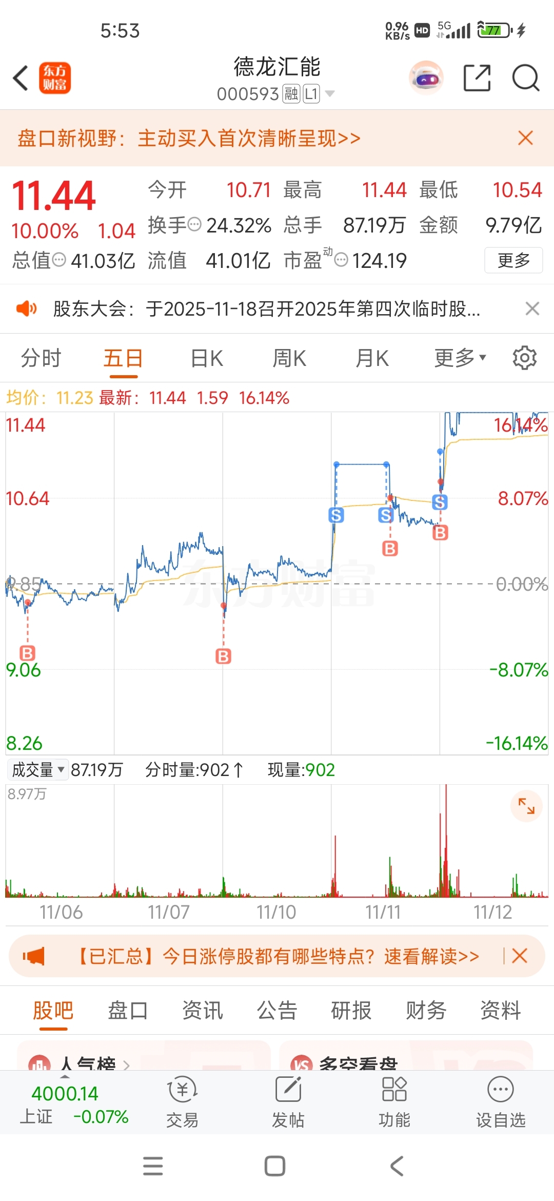 $德龙汇能(SZ000593)$ 今天忙了一大天,句多东西给砸下来了