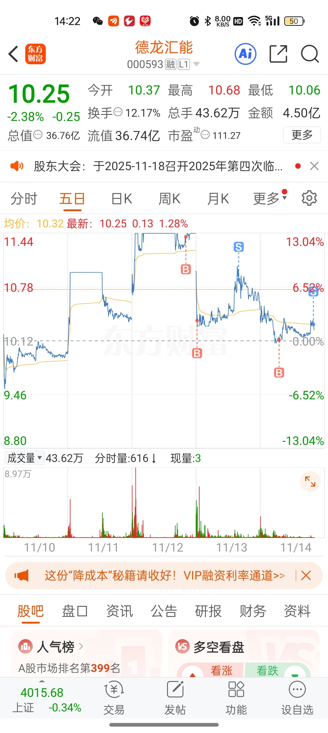 $德龙汇能(SZ000593)$ 重生归来之,我在593里面躲牛市做T