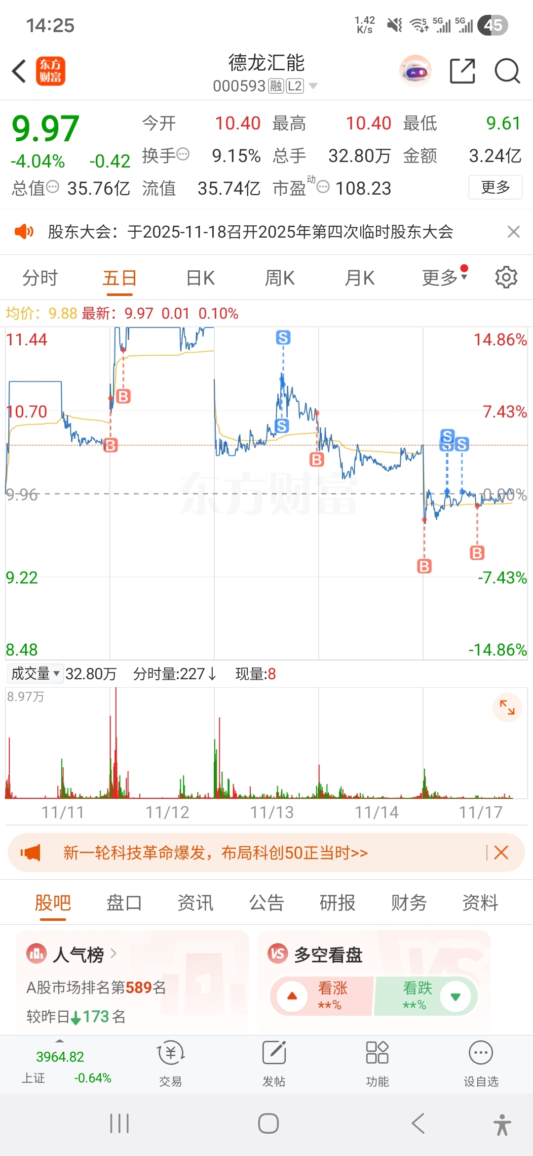 $德龙汇能(SZ000593)$ 这个位置就拿着吧,割肉没必要