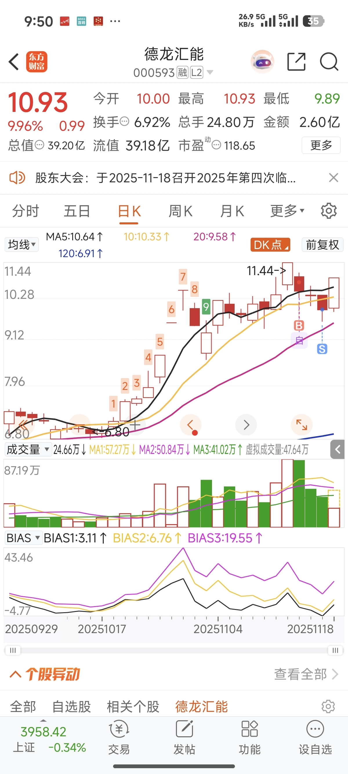 $德龙汇能(SZ000593)$ 没有什么能够阻挡