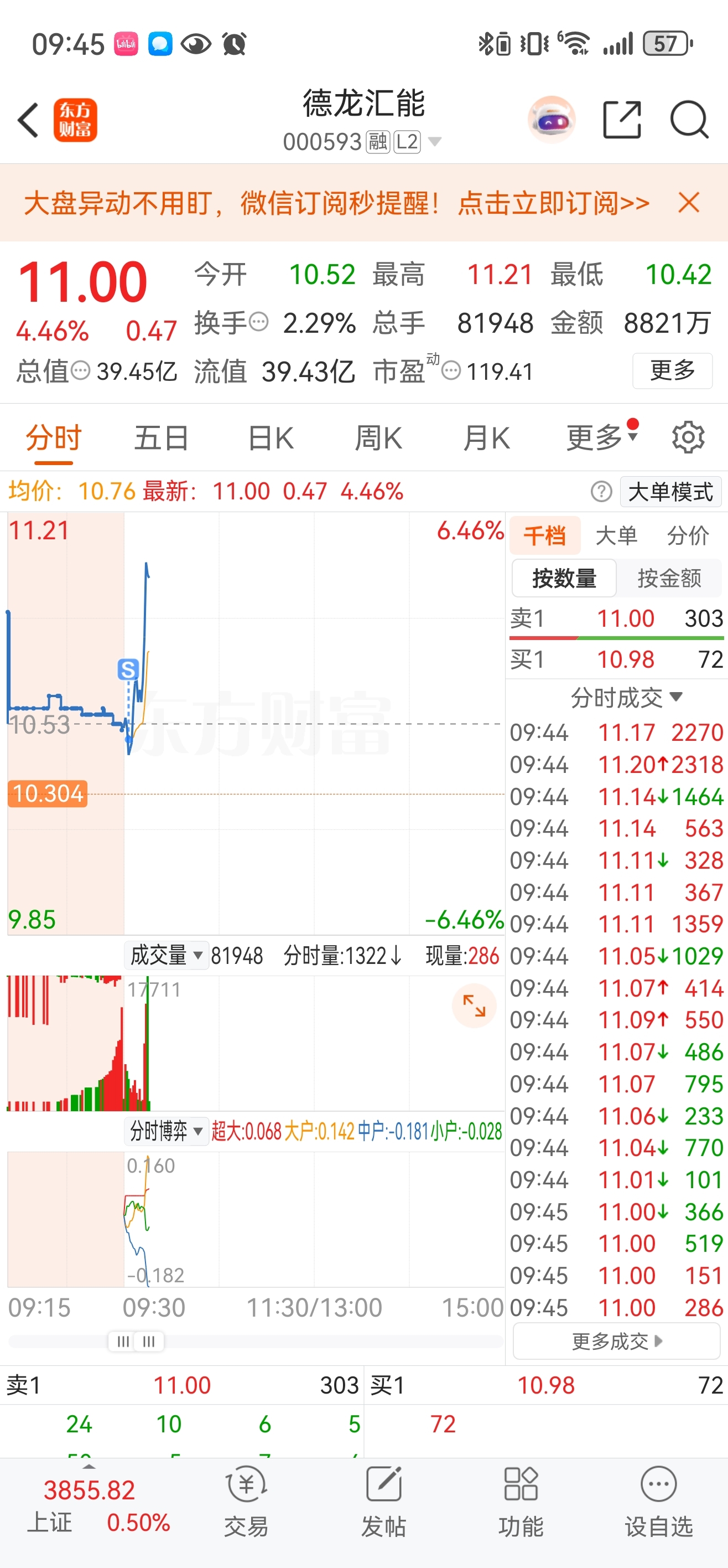 $德龙汇能(SZ000593)$ 还是要我卖出才会大涨。早盘卖出四分之一仓位,去新股。直接起飞。看来是我拖累大家了。四分之三拿到底!