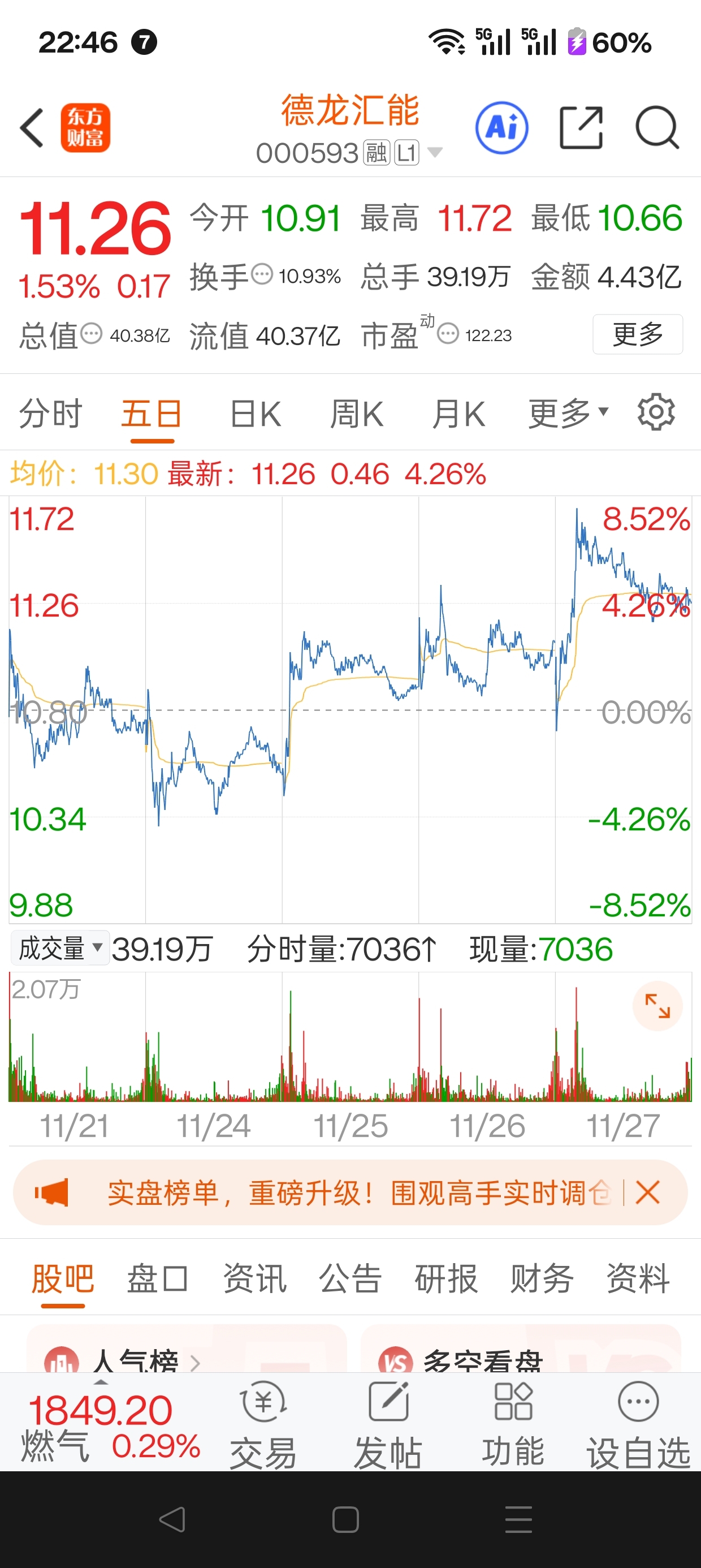 $德龙汇能(SZ000593)$ 10.75