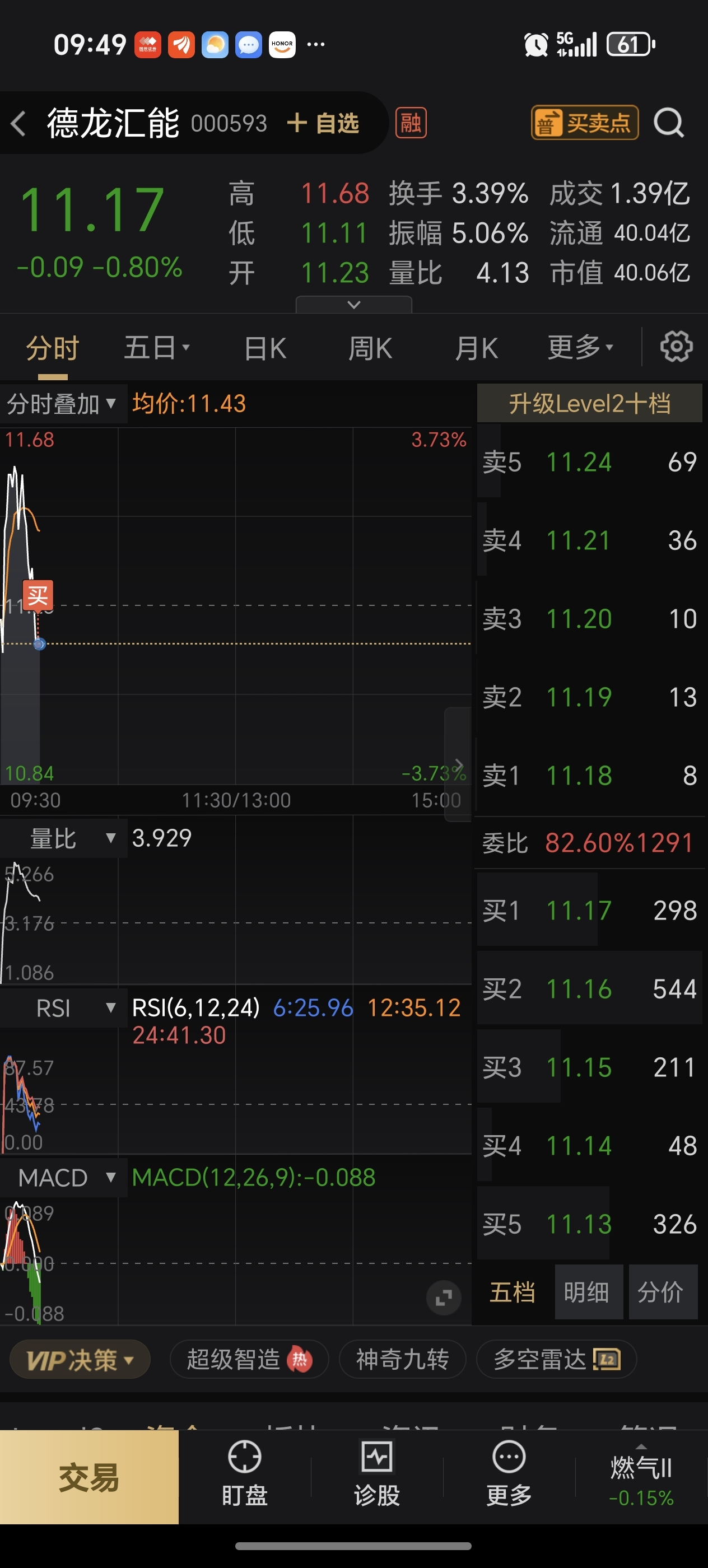 $德龙汇能(SZ000593)$ 爱咋咋地吧