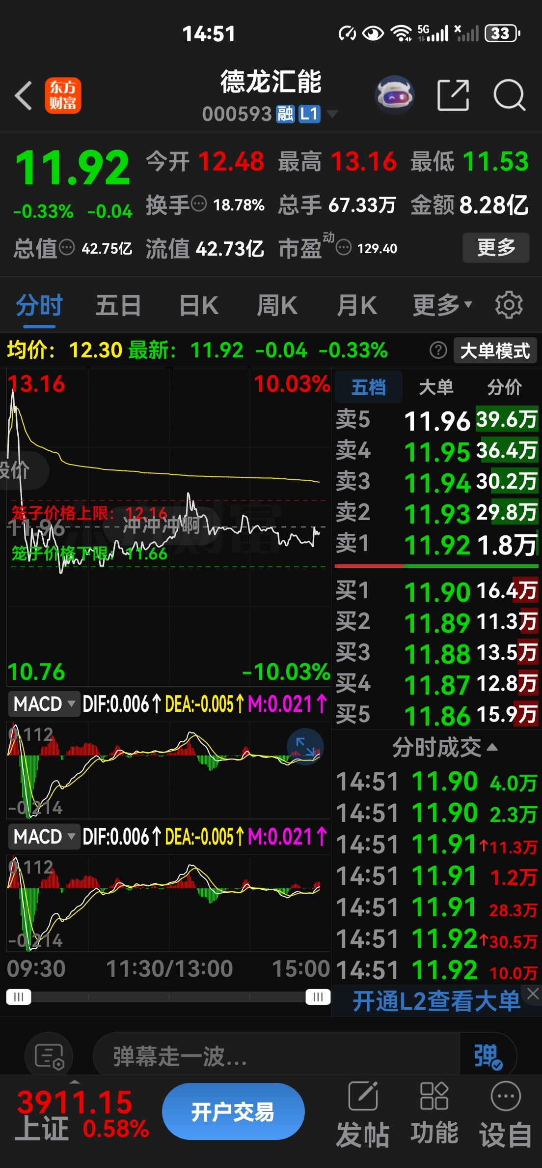 $德龙汇能(SZ000593)$ 【争取尾盘全部买进】静等今天晚上二十点利好消息,12元以下全是黄金