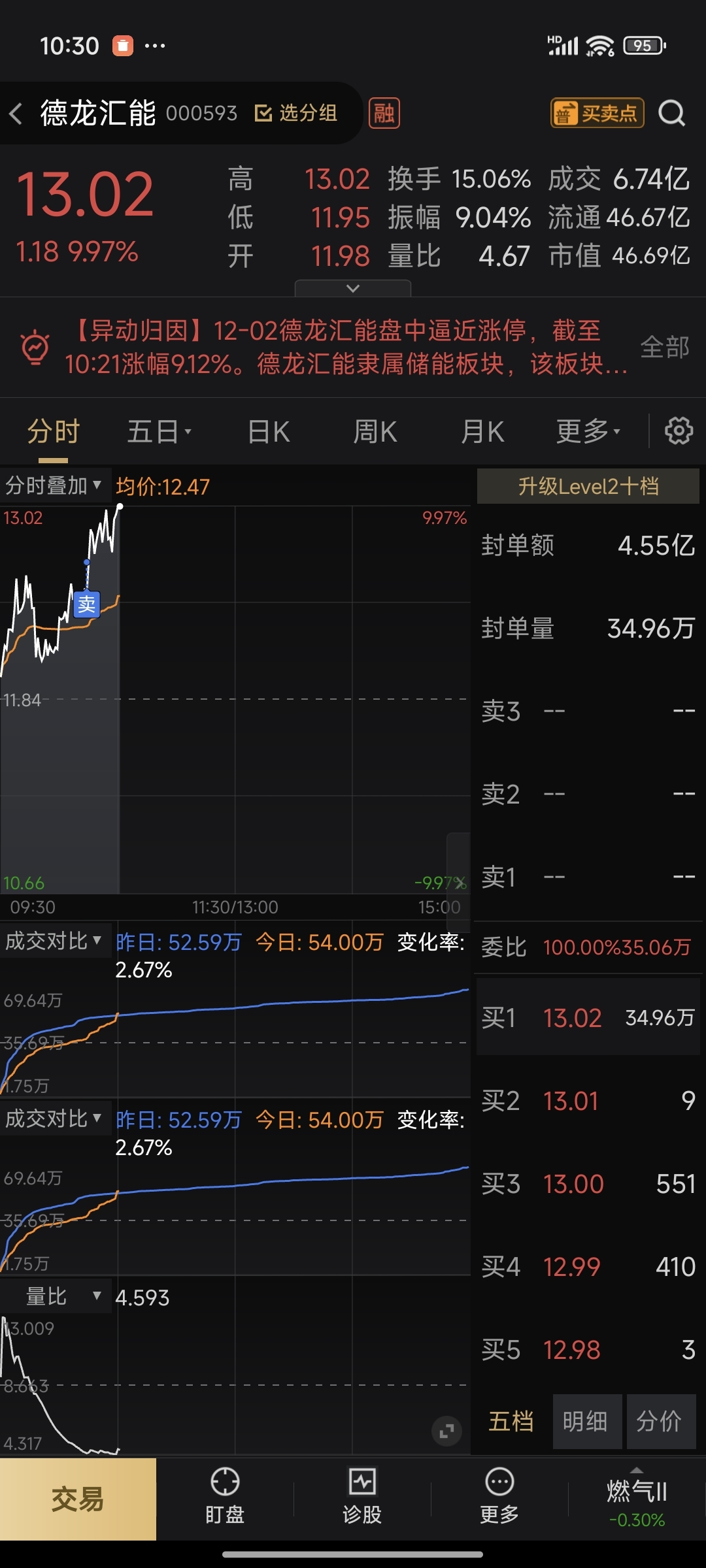 $德龙汇能(SZ000593)$ 昨天一群小丑呢