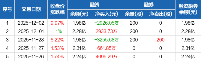 德龙汇能:融资净偿还2926.05万元,融资余额1.98亿元(12-02)