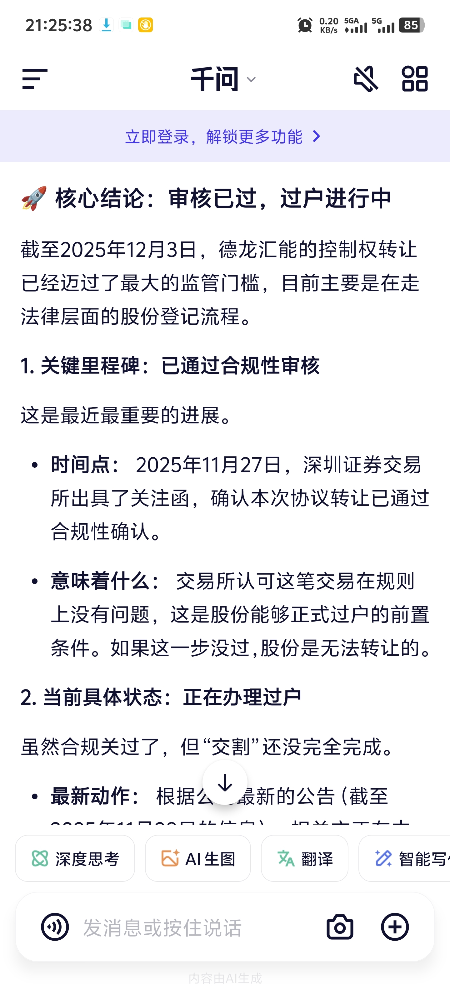 $德龙汇能(SZ000593)$ 耐心等待,如果真能成功,股票是不会下跌的,只会让别人捡筹码,预期是边涨边洗,最迟周末出消息