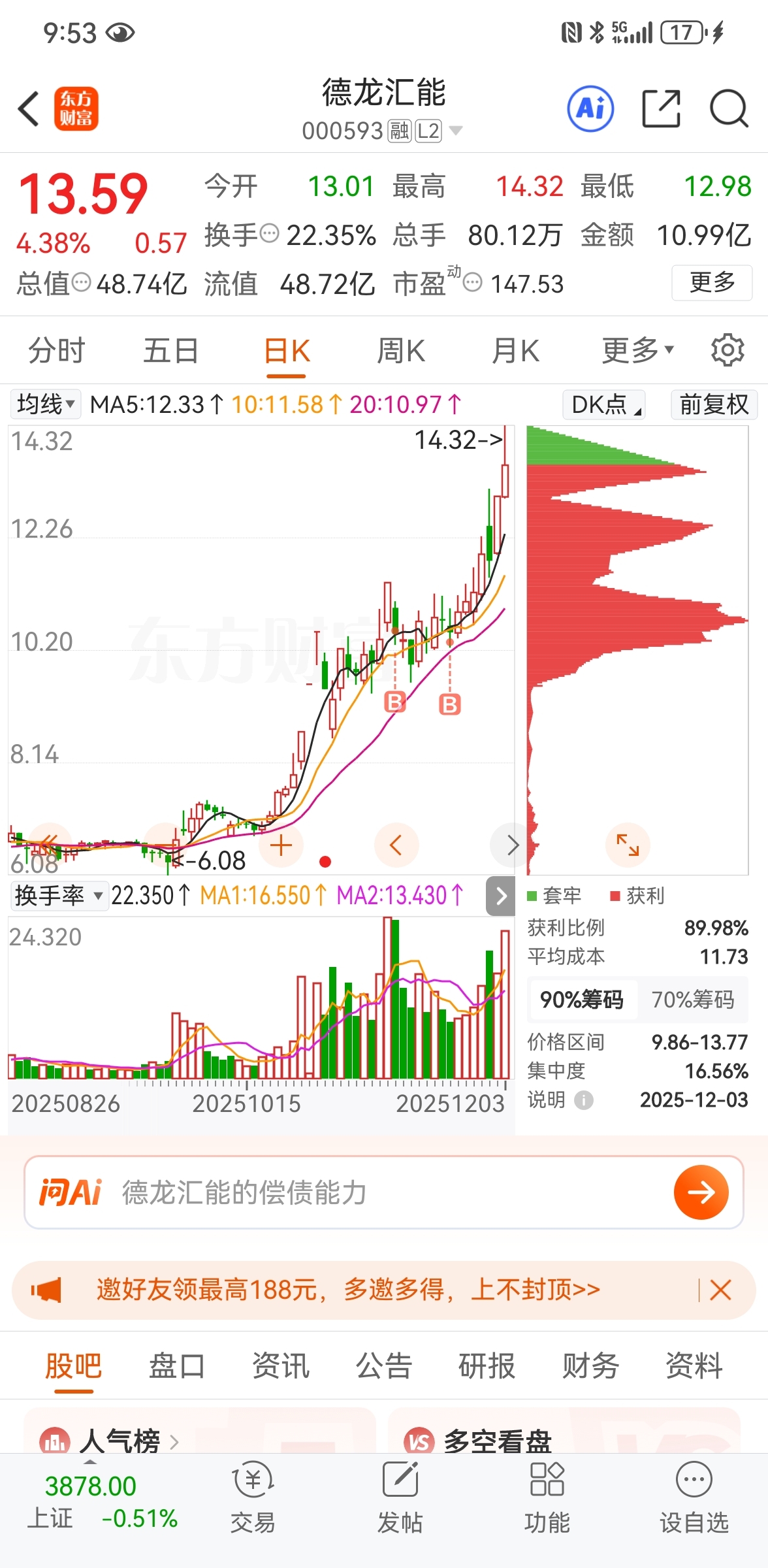 $德龙汇能(SZ000593)$ 我连t都不舍得做的一只股,你们在慌什么?
