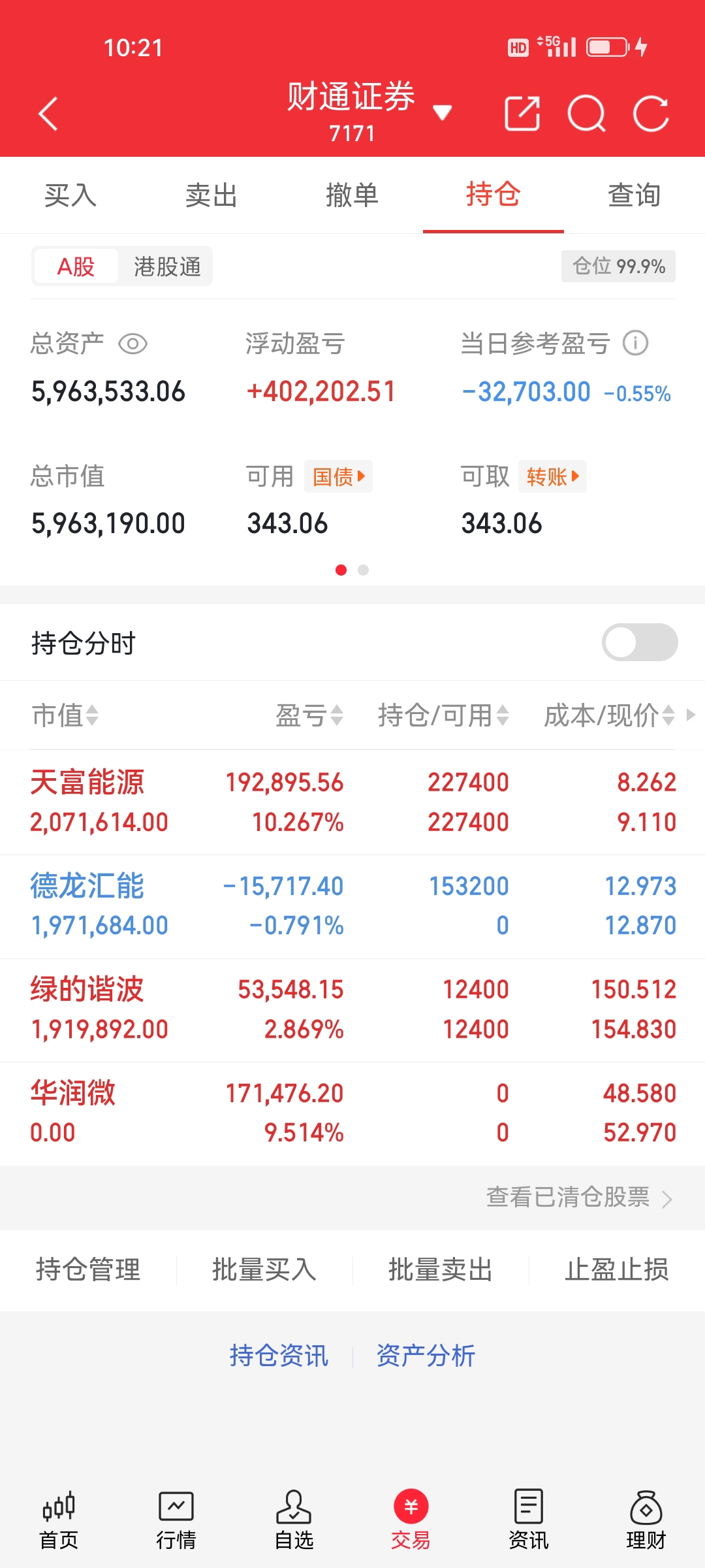持有:$天富能源(SH600509)$ $绿的谐波(SH688017)$