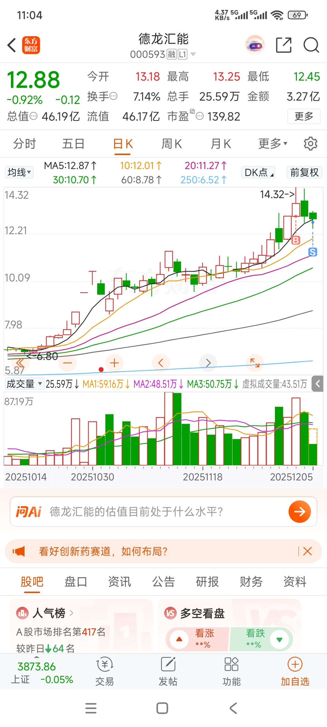$德龙汇能(SZ000593)$ 这主力脑子不知道想什么,横盘一个月就为了10个点,把好好的图形搞的这么难看,综合前面走势,看出就没什么实力,先跑为敬,后续涨上天都不会在来。