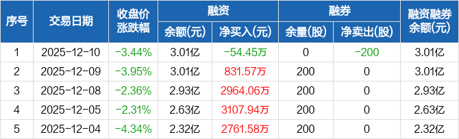 德龙汇能:融资净偿还54.45万元,融资余额3.01亿元(12-10)