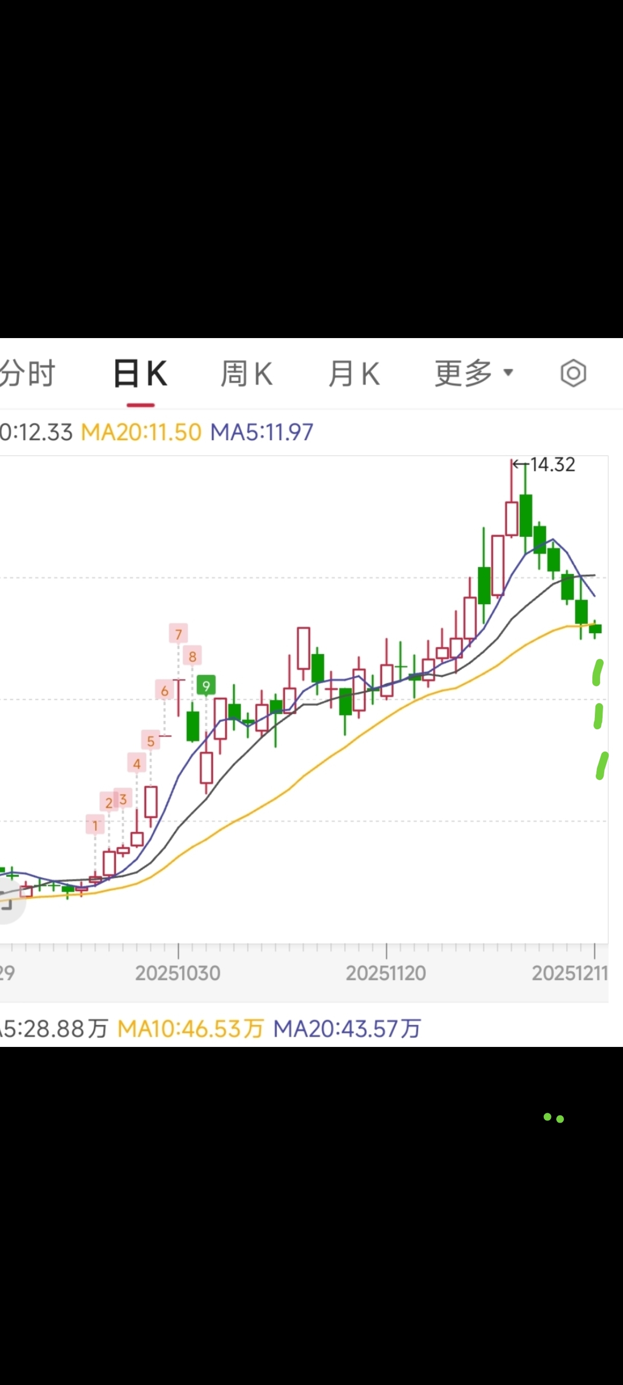$德龙汇能(SZ000593)$ 9元的时候建议大家全仓干,14元的时候强烈建议大家卖。前几天画了图,今天再画一个
