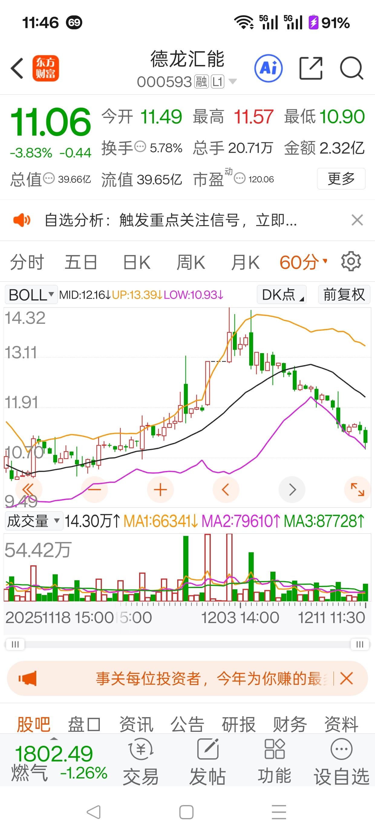 $德龙汇能(SZ000593)$ 买入,跌够了