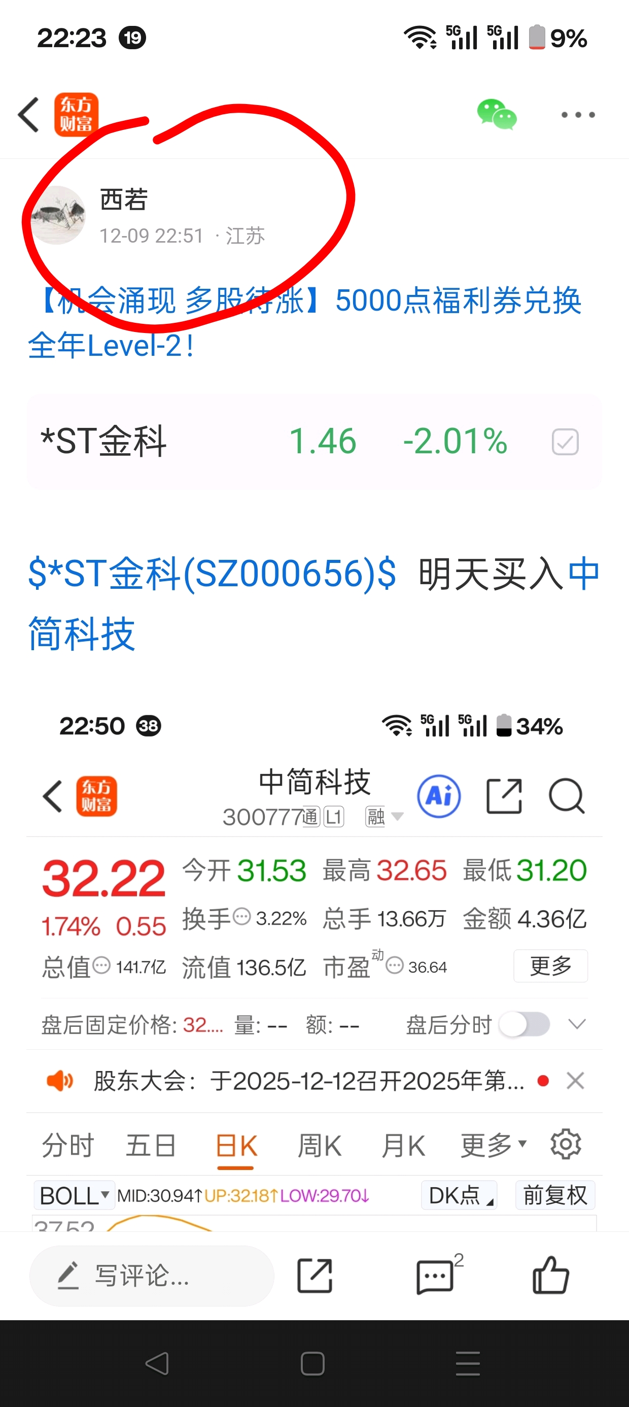提示买入中简科技,周二晚上。连续涨了两天。该换股的早了换股。