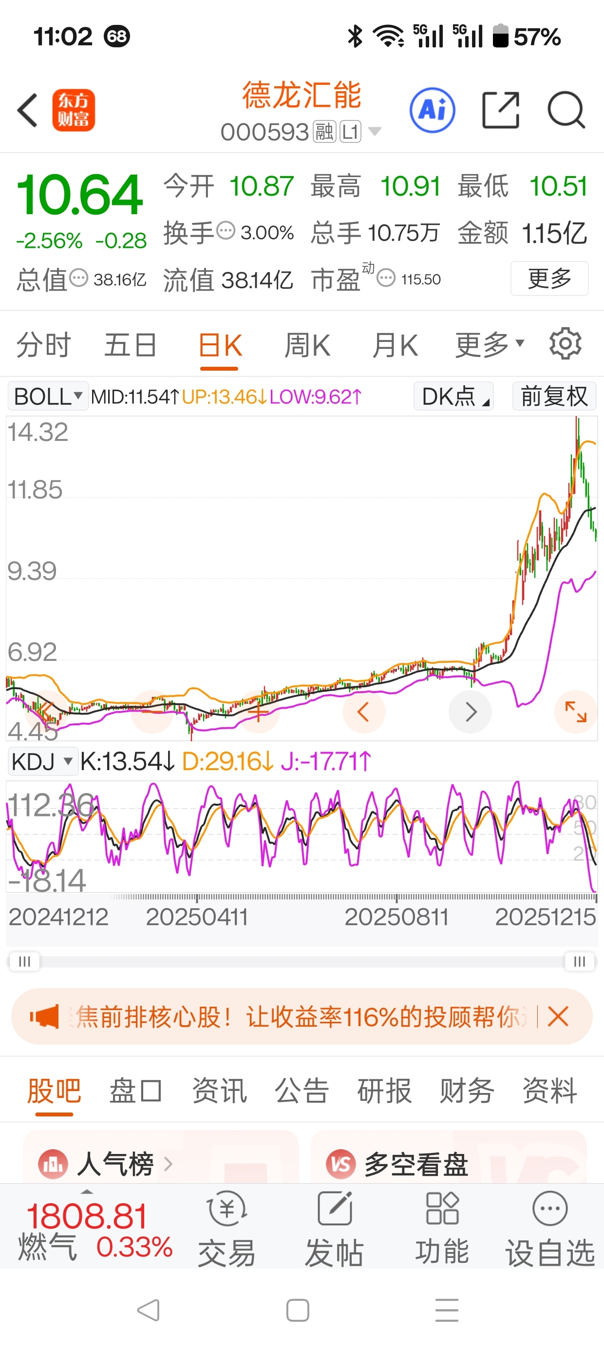 $德龙汇能(SZ000593)$ 不要买,千千万万不要买,A杀形态出来了,要买等到尾市或者股价打到下轨线买。