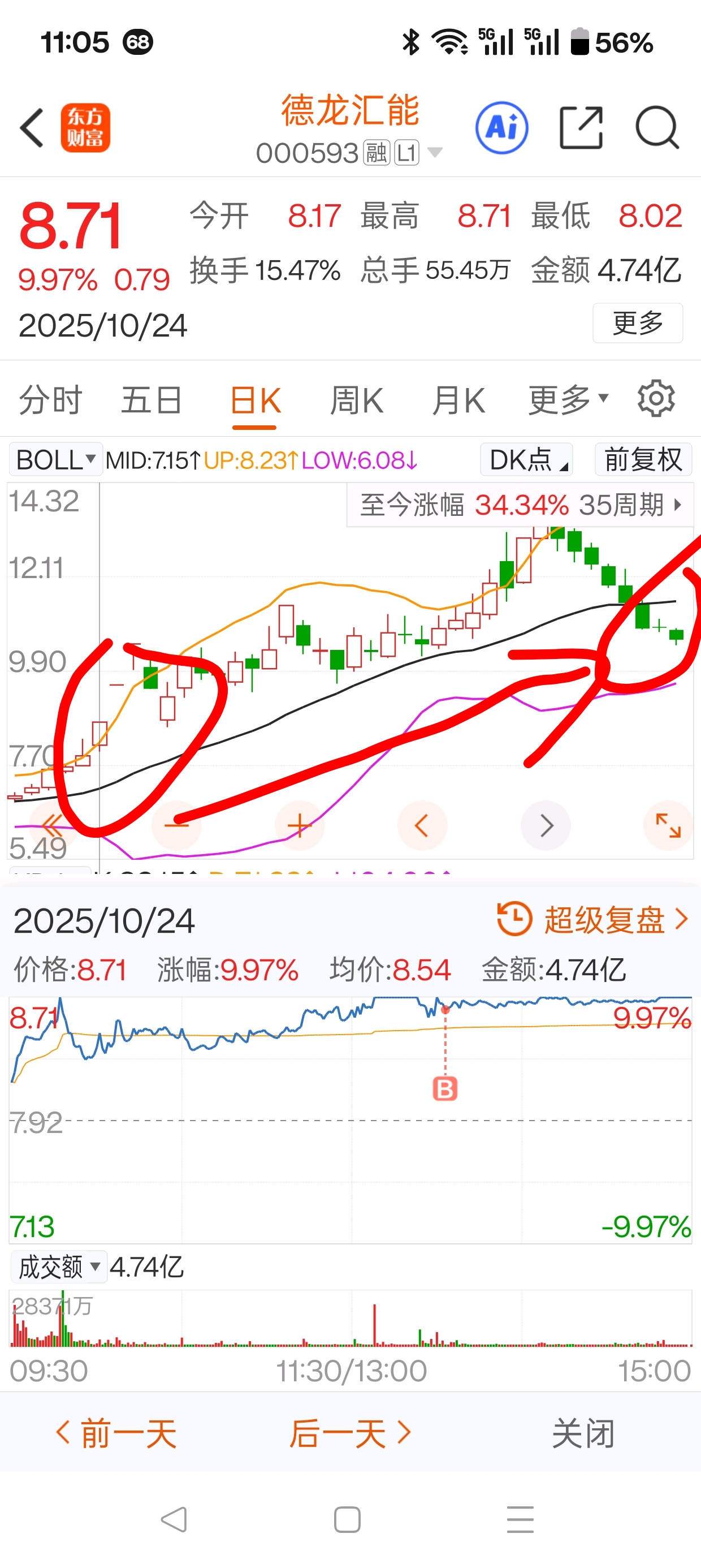 $德龙汇能(SZ000593)$ 千万不要贪图便宜买。便宜不便宜看跟谁比,第一个涨停8.6那里看,股价还是很高,太高了。做反弹,做t你去玩一下,没有买的,要补仓的,千万不要买。