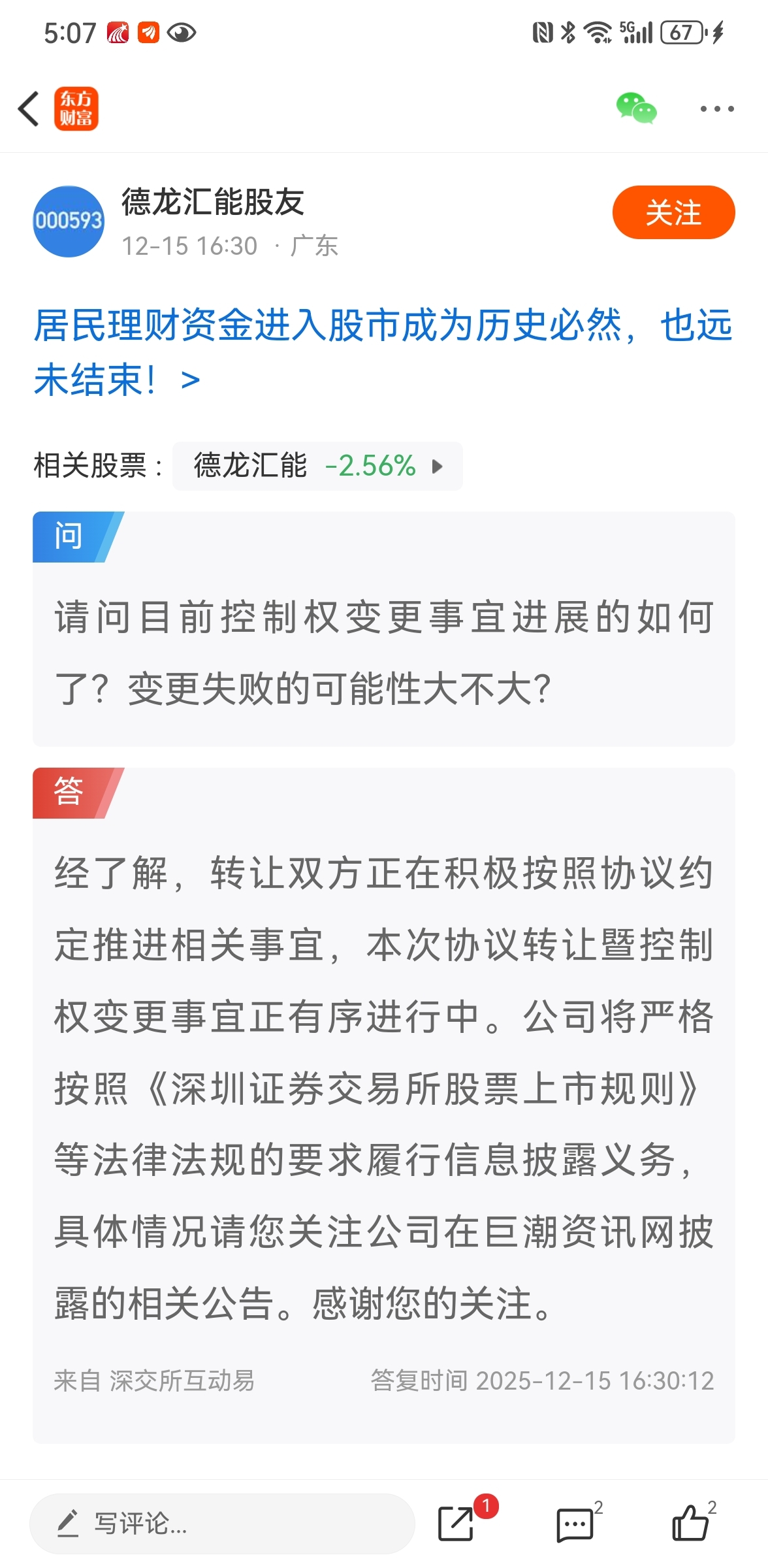 $德龙汇能(SZ000593)$ 请了个复读机当董秘?每次问到相关问题,都是这一个回复。