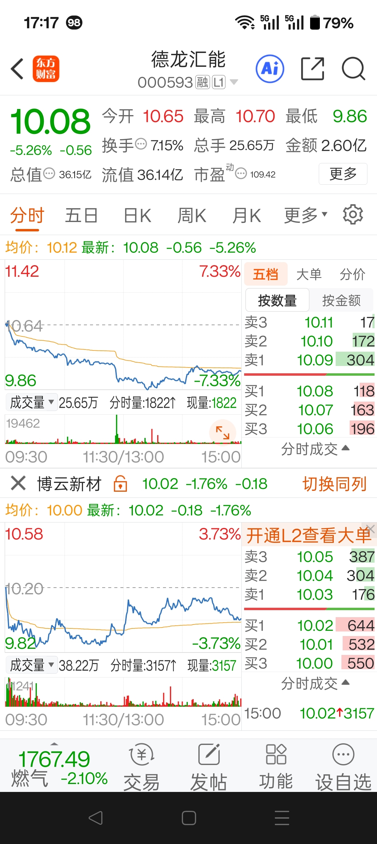 $德龙汇能(SZ000593)$ 有没有跟你们说过,昨天卖出德龙10.70,买入博云10.20,等博云股价超过德龙,就换回去。今天博云上10元的时候德龙在9.95。差价可以做到五个点。