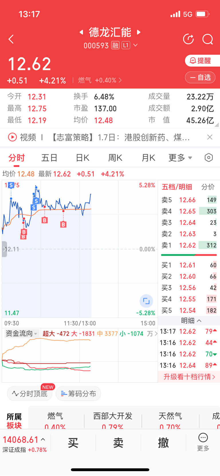 $德龙汇能(SZ000593)$ 今天112手T完,打卡下班。