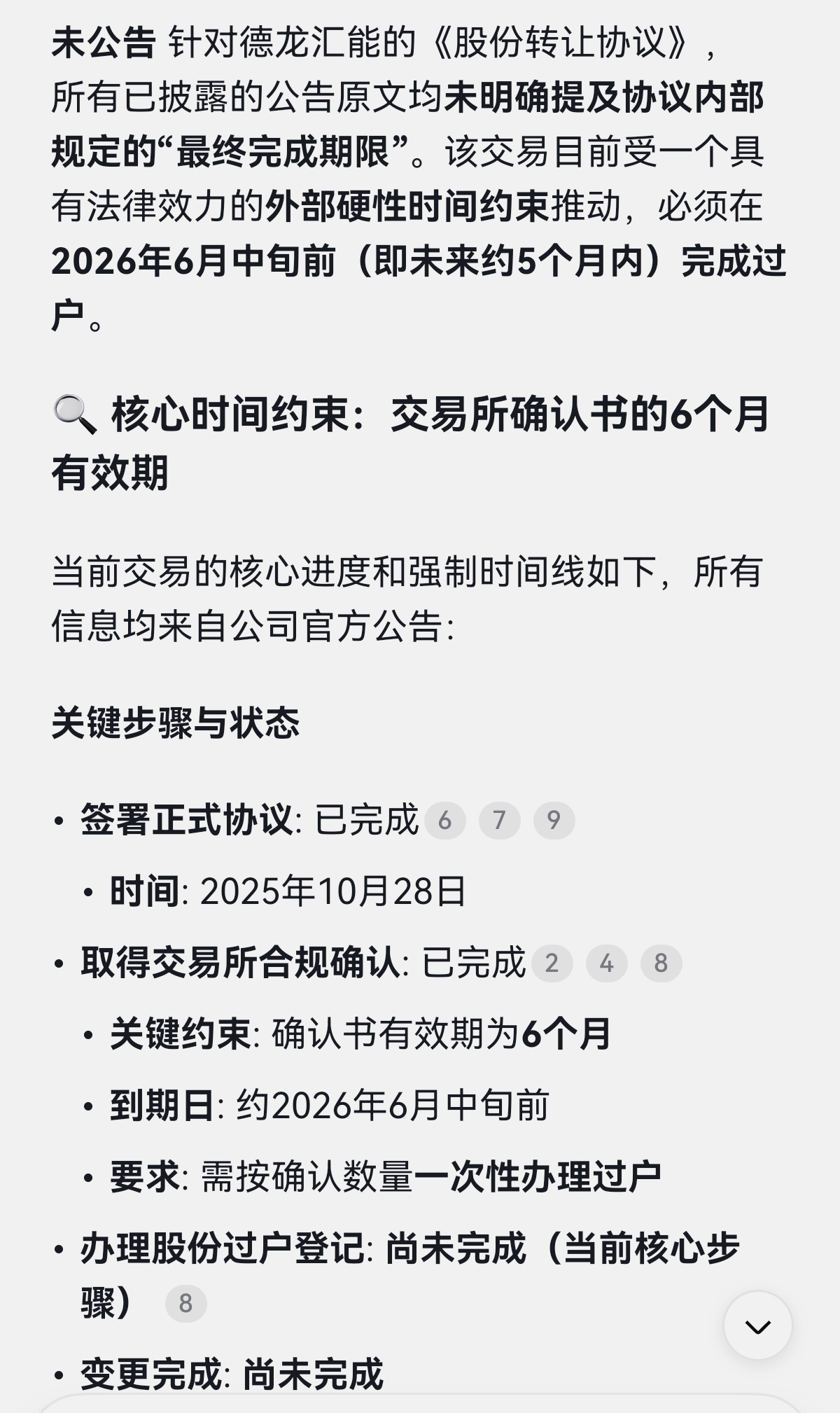 $德龙汇能(SZ000593)$ 明天就知道今天是不是过户公告的截止日期,今天进的明天要为自己的智商税买单~按交易所的规则明明是六月底之前…