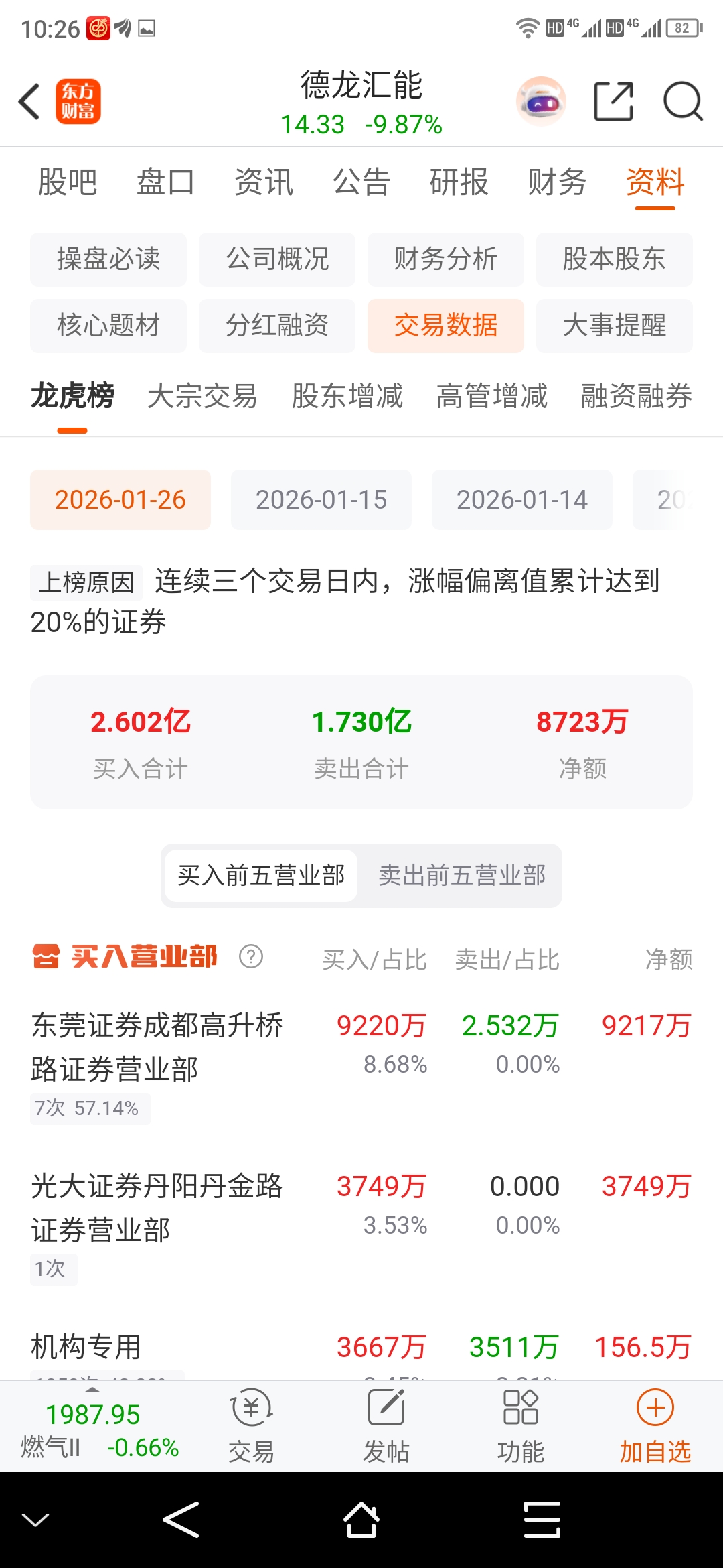 $德龙汇能(SZ000593)$ 买一是方胖子的席位吗