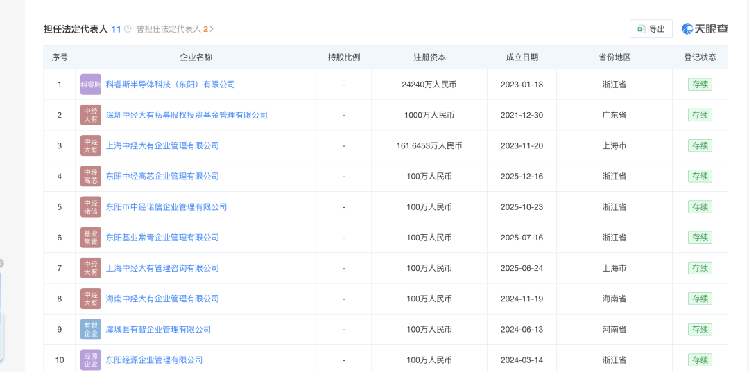 此外,诺信芯材最终实控人孙维佳在11家公司担任法定代表人,还是科睿斯半导体科技(东阳)有限公司(下称“科睿斯”)的董事长。