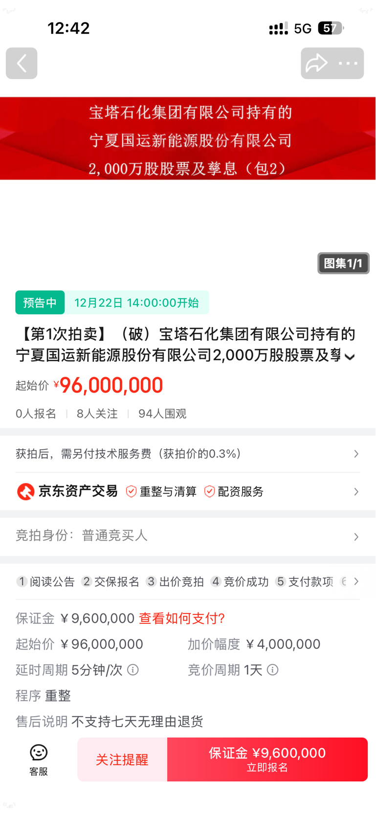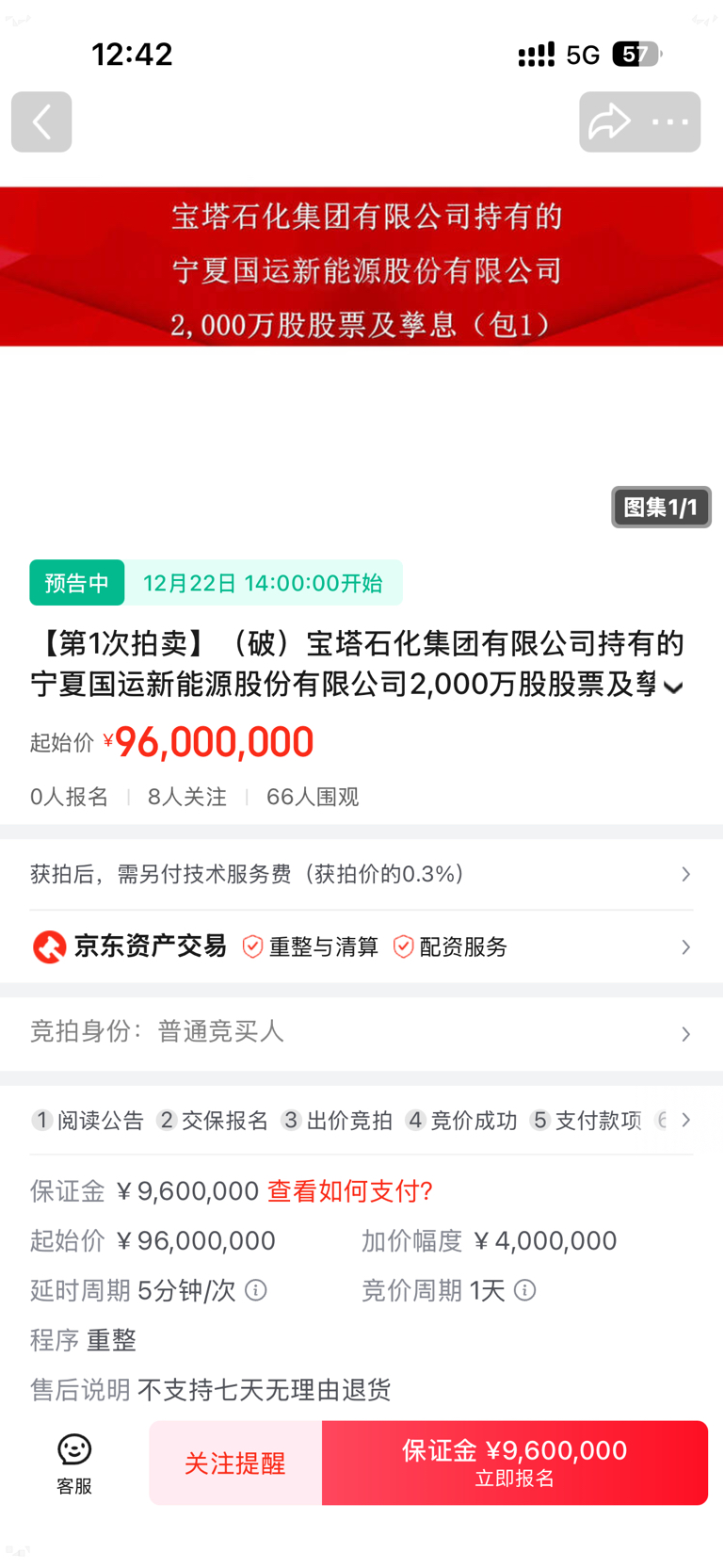 $*ST宝实(SZ000595)$ 挂出来了,第一次2000万股,第二次流拍,第三次1.4亿股,第四次也就是这次4000万股,加价一次不是100万了,而是400万起。