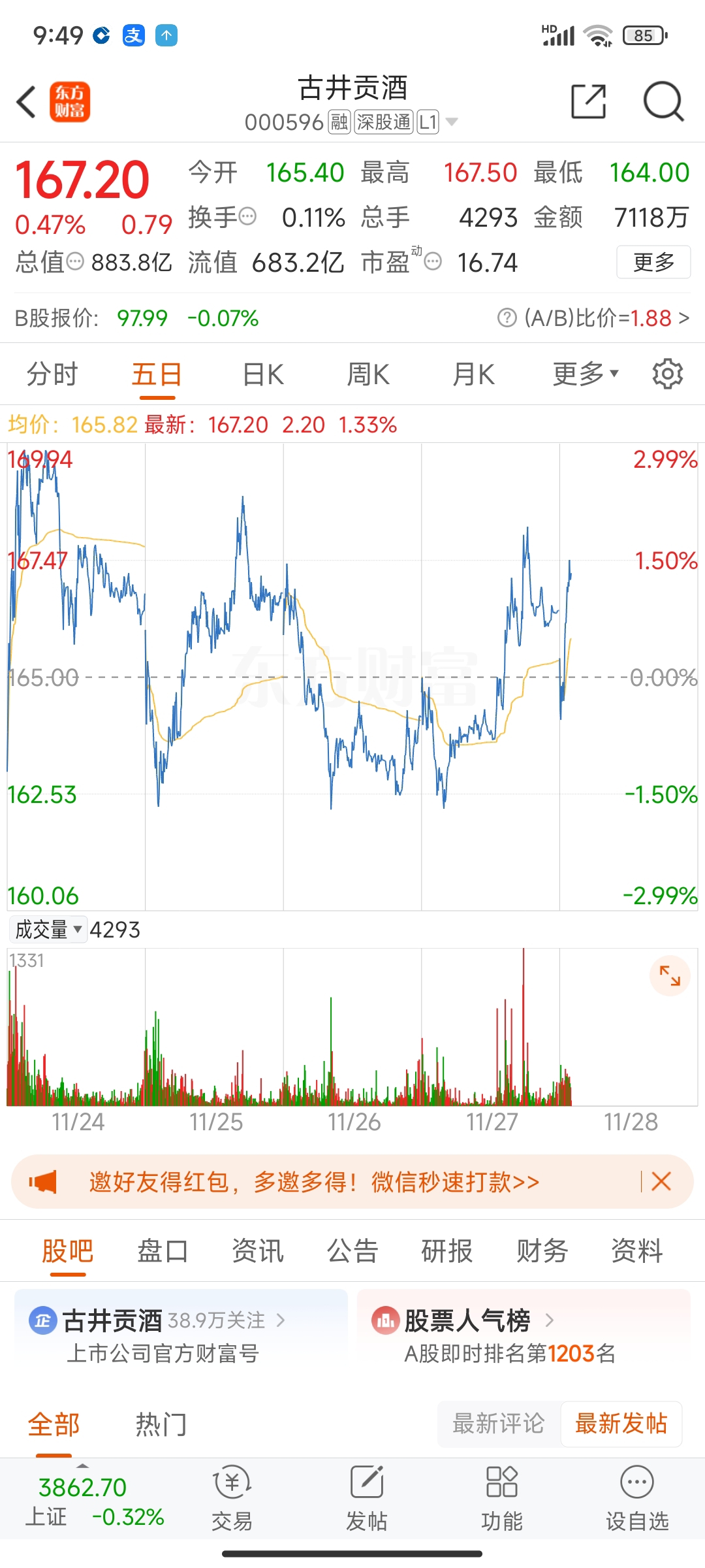 $古井贡酒(SZ000596)$ 最近都是开盘洗散户,洗完再拉起来
