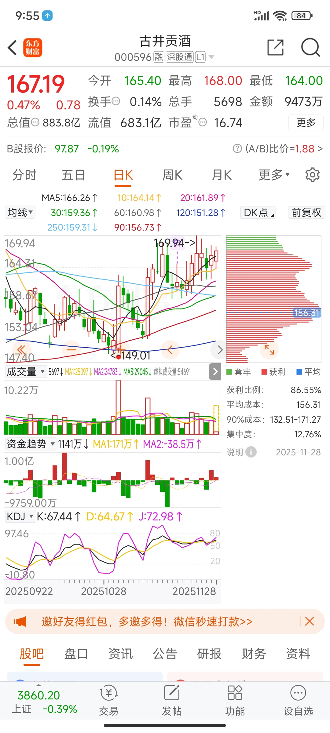 $古井贡酒(SZ000596)$ 逐步开始股价中心上移,每次开盘绿都有资金托底拉起来,足以说明主力在吸筹码,把散户踢出去,准备好跨年行情