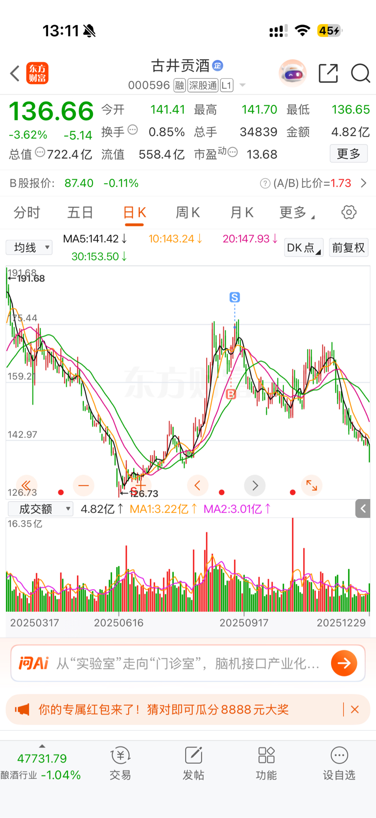 $古井贡酒(SZ000596)$ 破百才能买