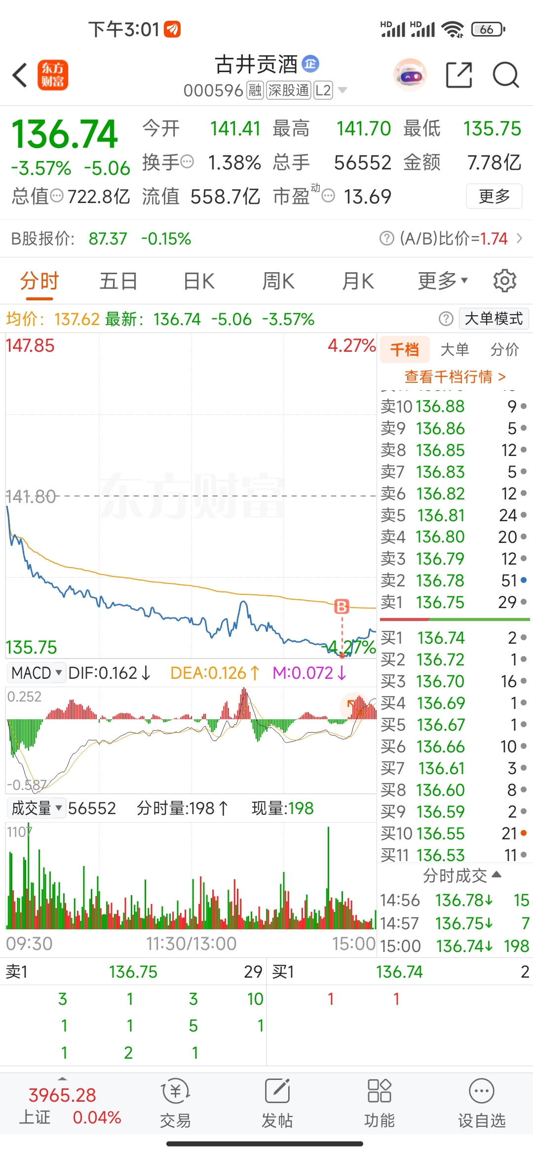 135.85成功抄底,这个月都跌了快20个点了,最后两天肯定有反弹,止损位130