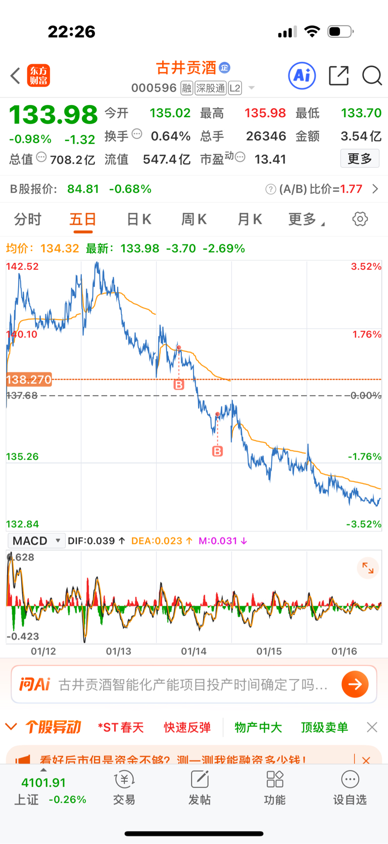 $古井贡酒(SZ000596)$ 这走势跌到人绝望!