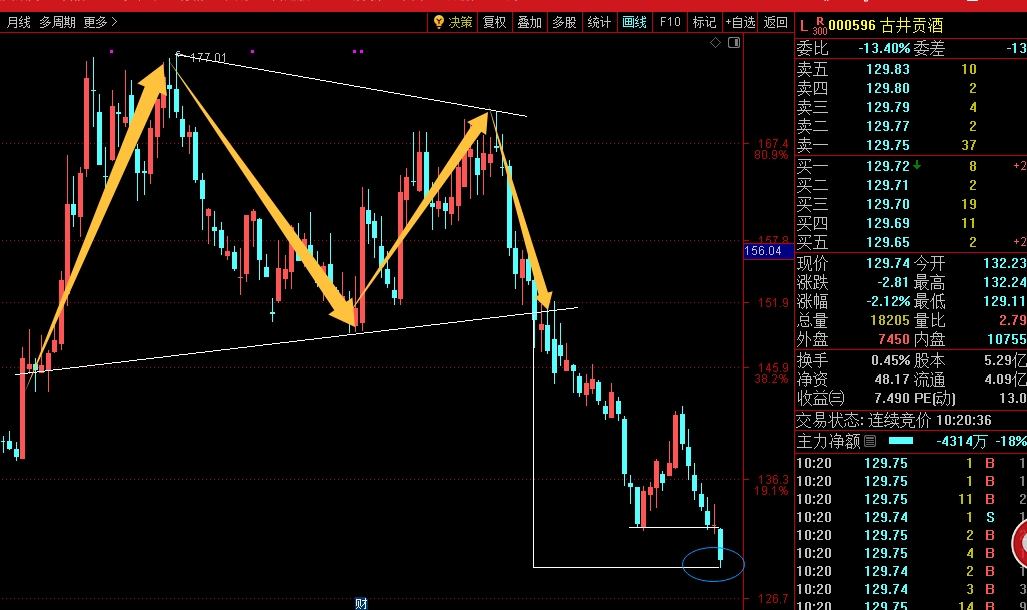 $古井贡酒(SZ000596)$ M跌幅,满足