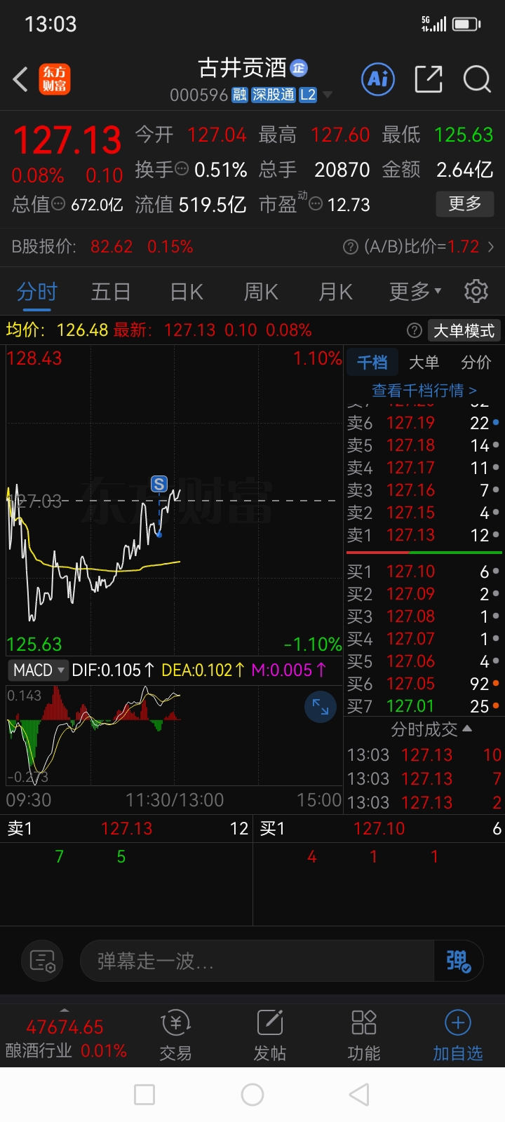 $古井贡酒(SZ000596)$ 玛德卖了你就涨