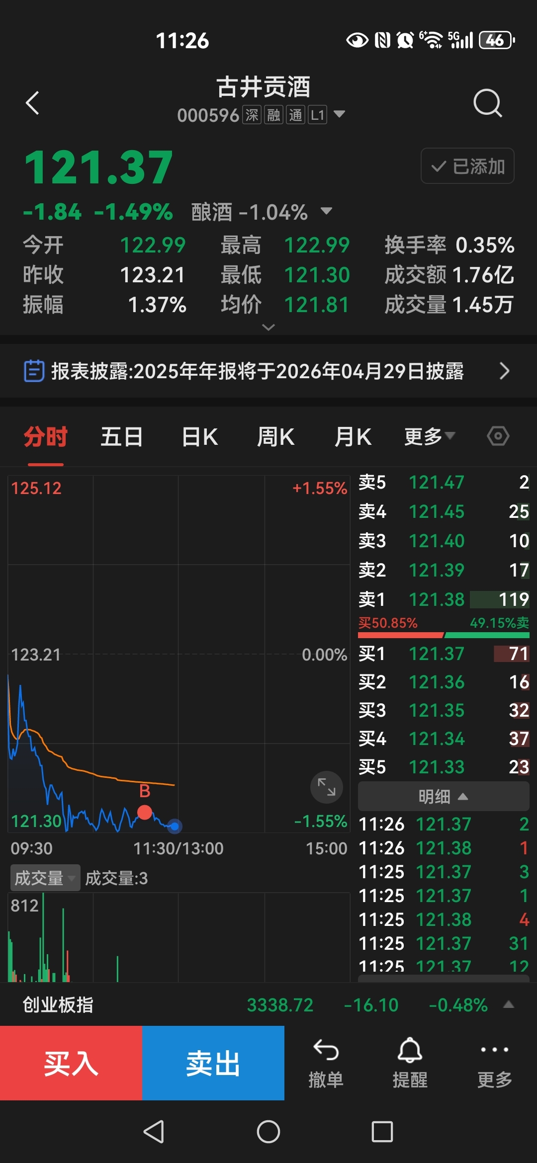 $古井贡酒(SZ000596)$ 抱歉我有买点,又被我买跌了