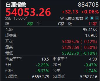 个股方面,除了珍酒李渡单周股价上涨5.13%外,其余多只白酒股涨跌幅波动在2%以内。具体来看,贵州茅台、山西汾酒周跌幅分别为2.04%和2.83%;泸州老窖、古井贡酒周跌幅均在5%左右,其中古井贡酒周跌幅达到6.12%。