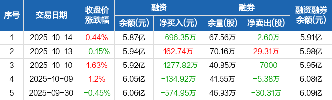兴蓉环境:融资净偿还696.35万元,融资余额5.87亿元(10-14)