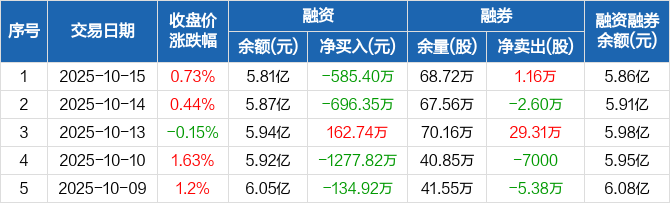 兴蓉环境:融资净偿还585.4万元,融资余额5.81亿元(10-15)