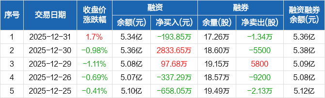 兴蓉环境:融资净偿还193.85万元,融资余额5.34亿元(12-31)