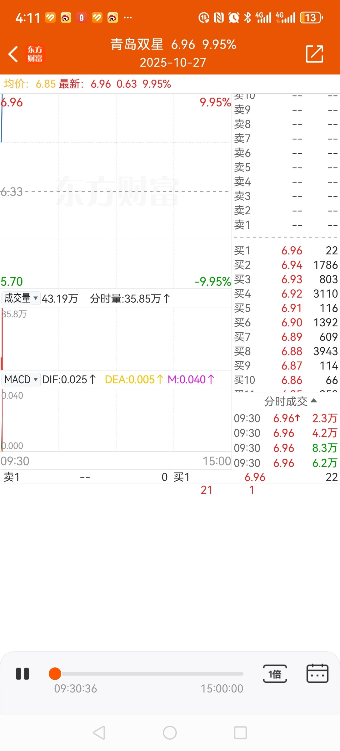 $青岛双星(SZ000599)$ 早盘大单封单不坚决,封单快炸了涨停板走了,说明有资金抢跑了,秒卖了1个多亿,而且排单前面都是小单封,虽然后面全天没漏单,预期明天大分歧,坐等分歧转一致