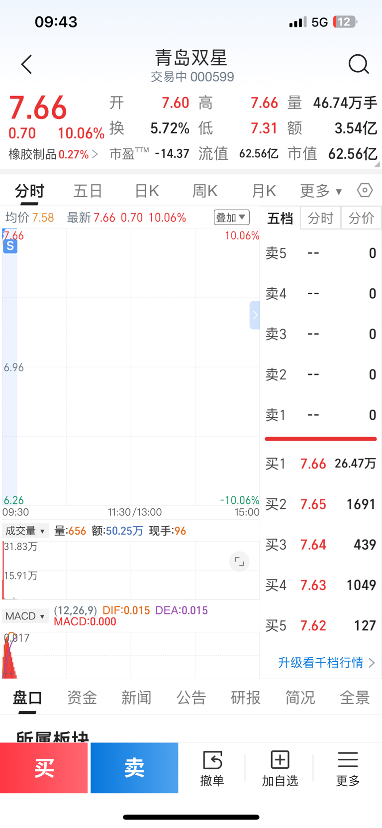 $青岛双星(SZ000599)$ 条件单开板卖出又卖一笔