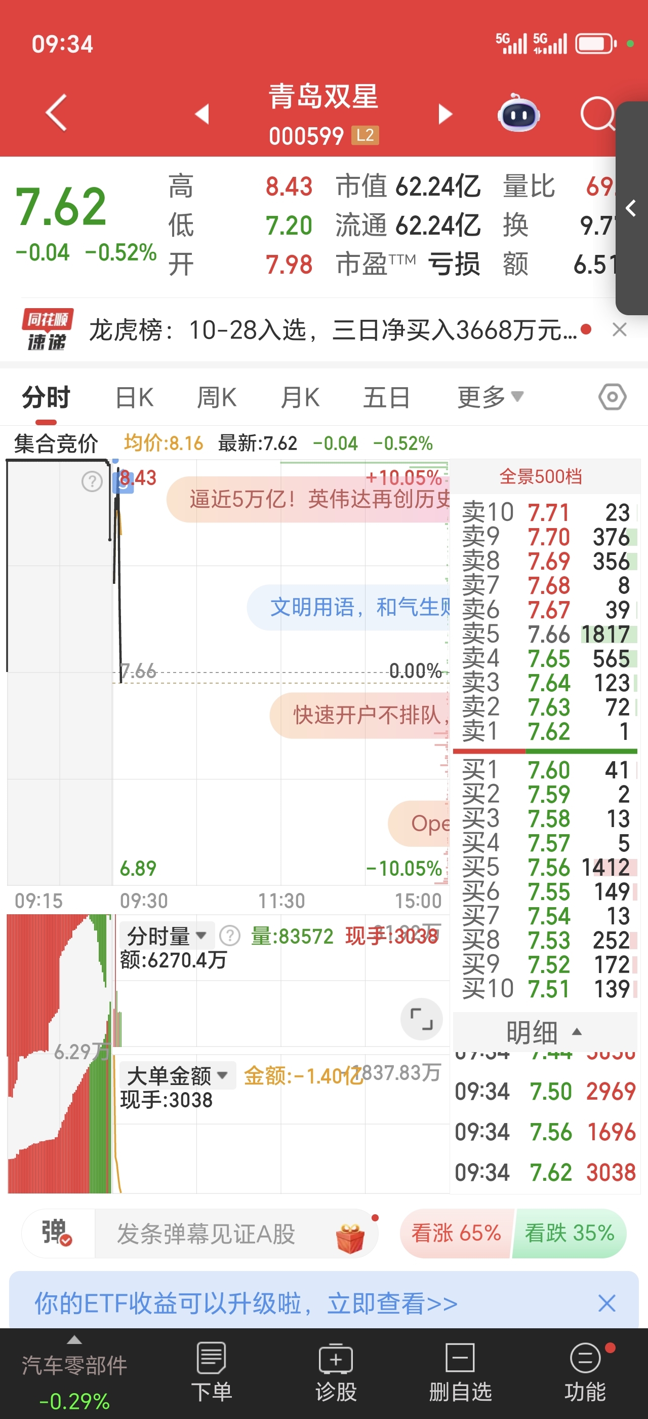 $青岛双星(SZ000599)$ 车上的发财,先跑了