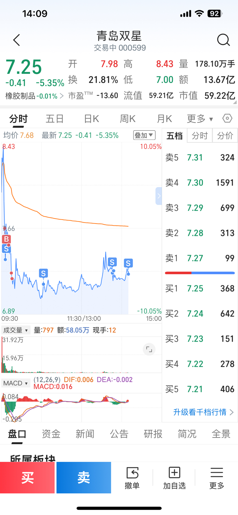 $青岛双星(SZ000599)$ 再减仓点
